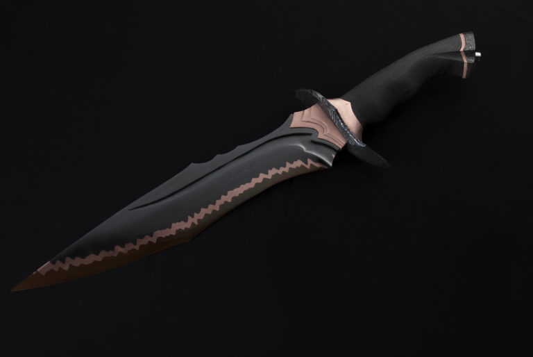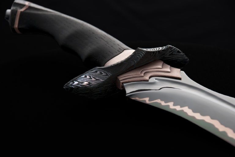 The blade is variation of the first art knife I have made. It collect experience from projects I have made in the past: Black Bowie knife, Moonlight, Cleaver of Doom.